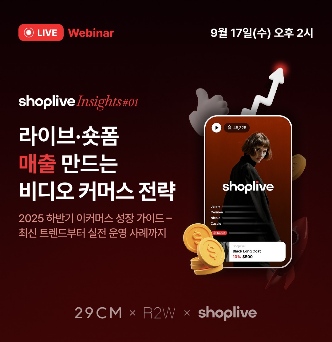 이번 세미나는 샵라이브의 라이브 솔루션으로 진행되는 것이 특징이다. 인사이트와 제품 경험이 결합된 형태라는 점에서 차별화된다. 참석자들은 온라인 라이브로 세미나를 시청하는 동시에 퀴즈·설문 이벤트와 실시간 Q&A에 참여하며 샵라이브 솔루션의 여러 기능을 직접 체험할 수 있다.
