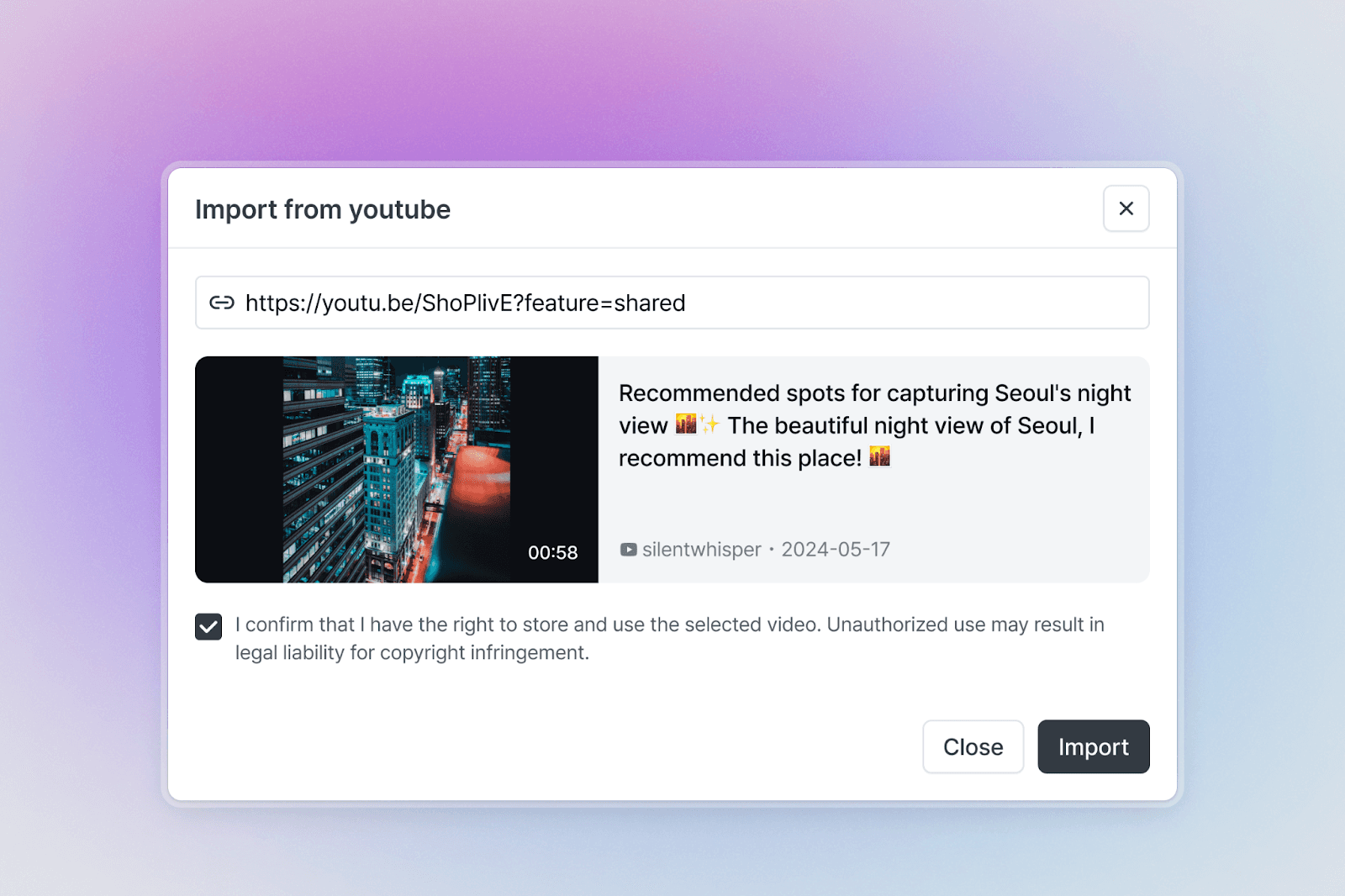가져올 YouTube Shorts URL 붙여넣기